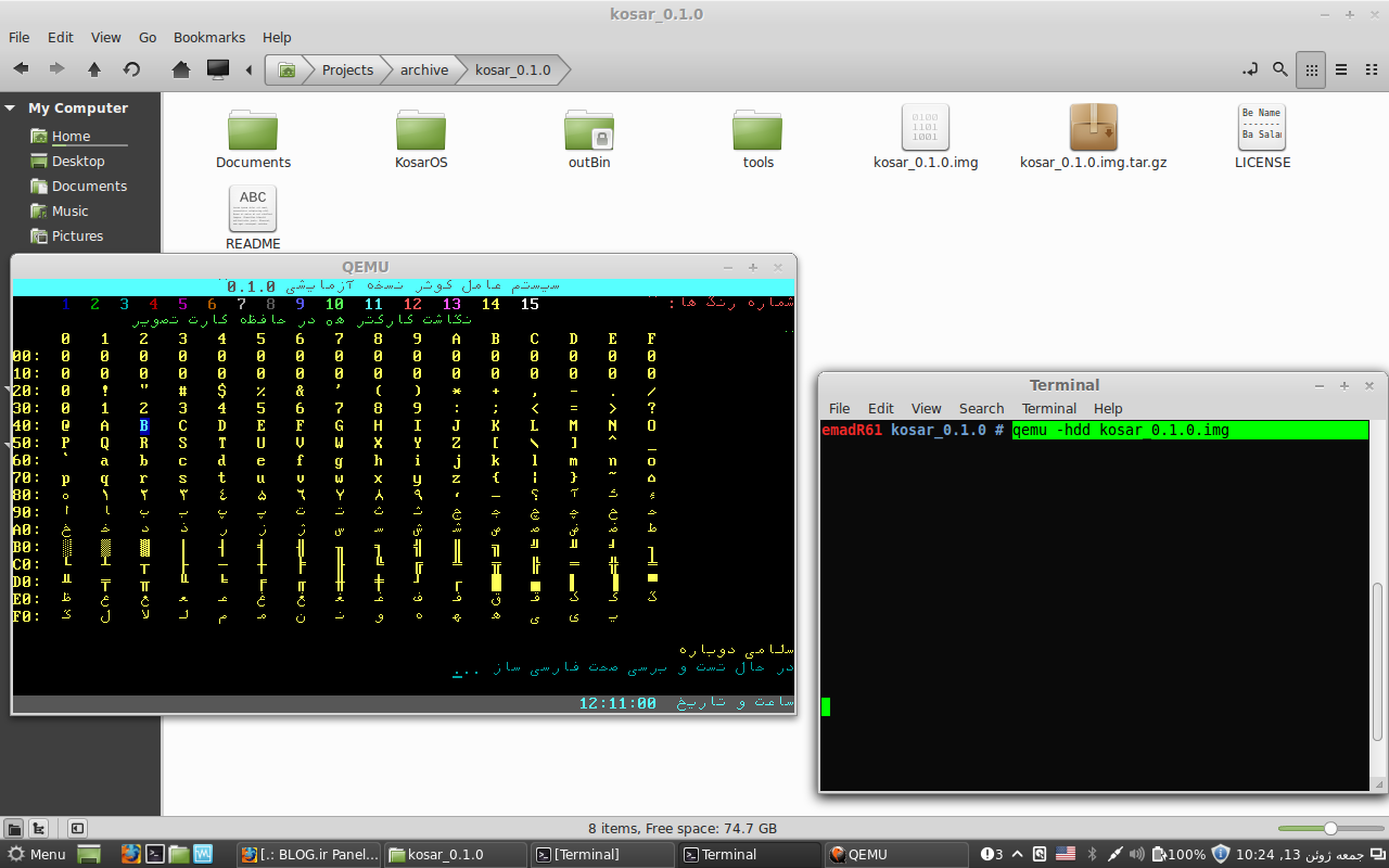 # qemu -hdd kosar_0.1.0.img برای اجرا سیستم عامل