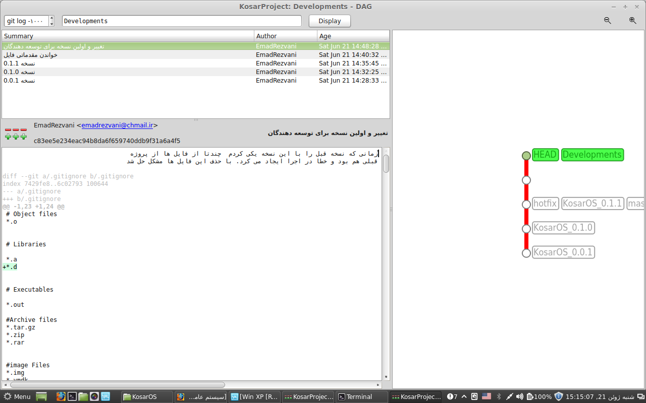 از امروز مدیریت کدهای سیستم عامل بر اساس Git می باشد.(با تشکر فراوان از آقای سانیان برای راهنمایی در راه اندازی و پیاده سازی). تصاویر آن در ادامه مطلب آورده شده است.