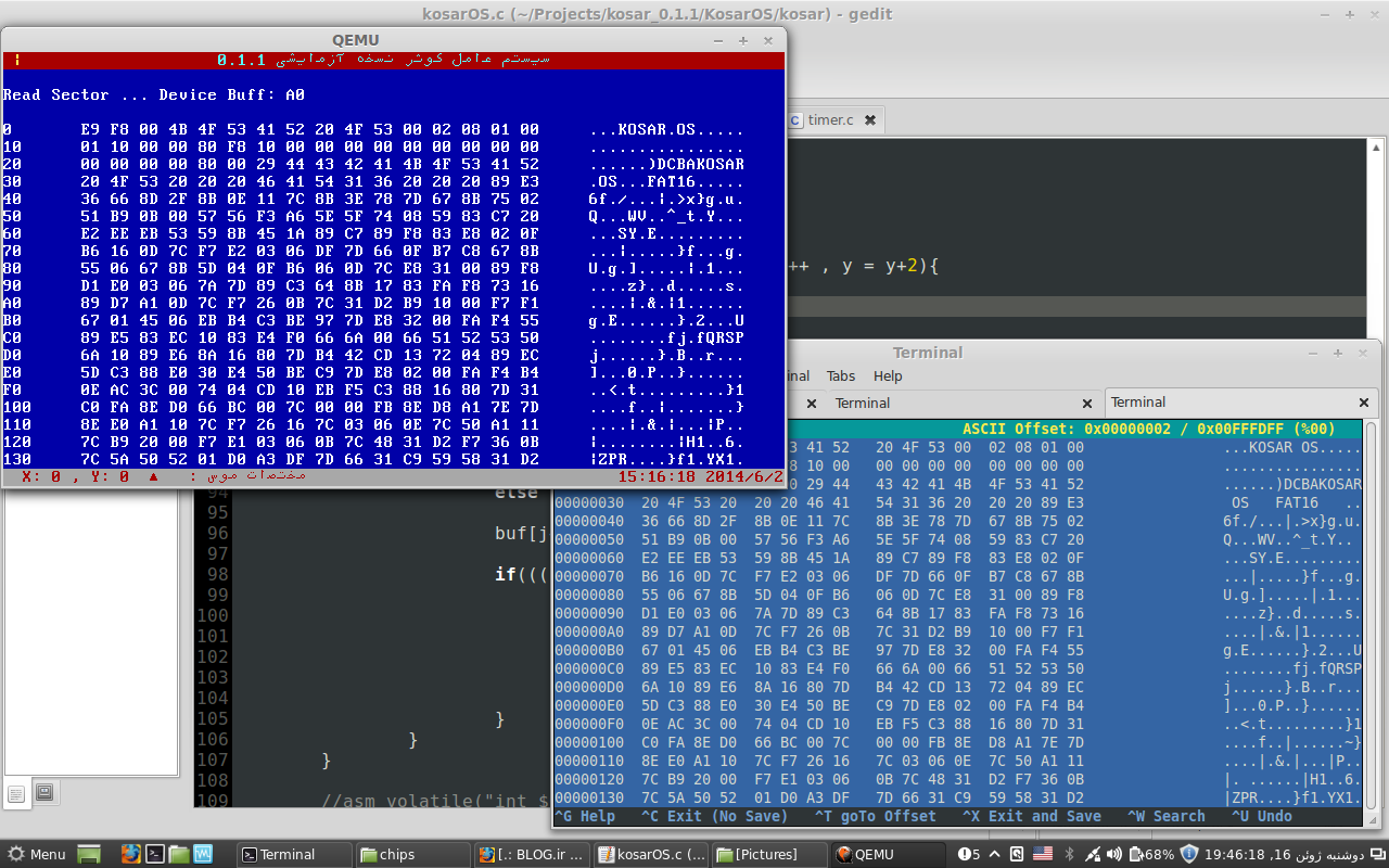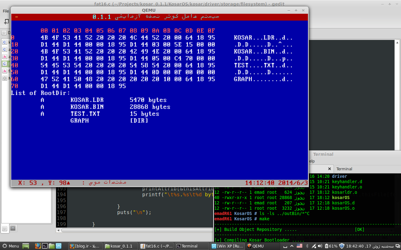 با سلام. همانطور که اطلاع دارید در حال حاضر سیستم فایل پیش فرض سیستم عامل کوثر FAT16 می باشد. تصاویر زیر روند پیشرفت کار را شرح می دهد.
