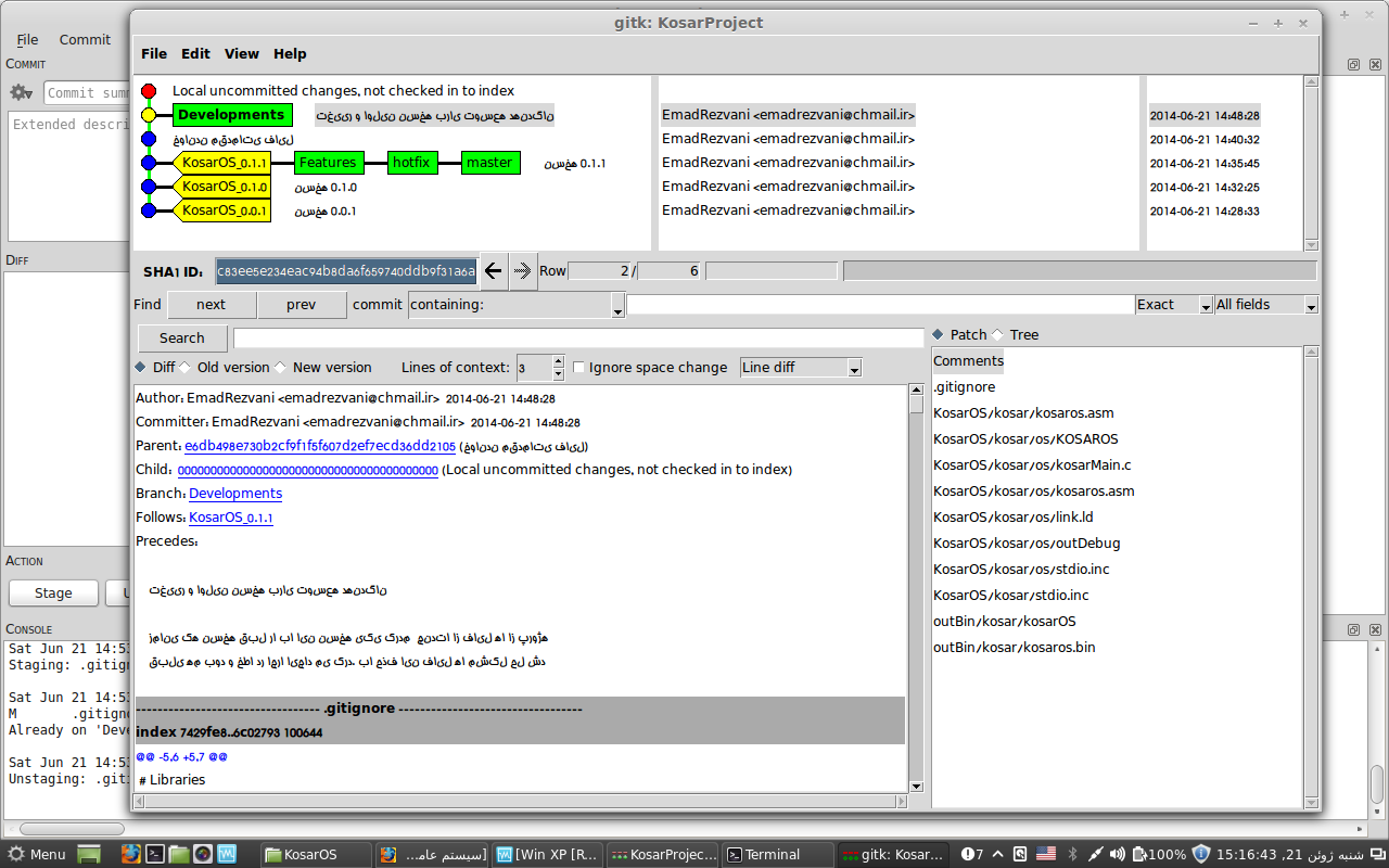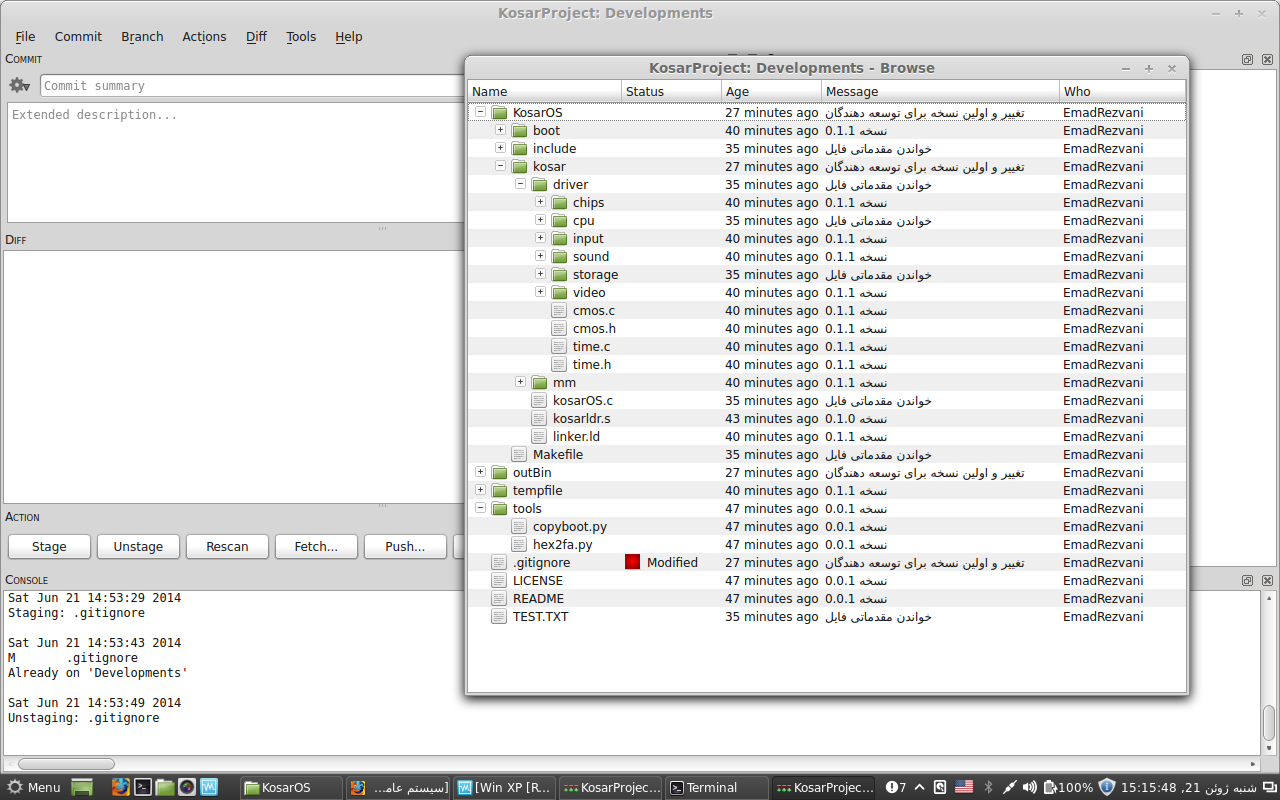 از امروز مدیریت کدهای سیستم عامل بر اساس Git می باشد.(با تشکر فراوان از آقای سانیان برای راهنمایی در راه اندازی و پیاده سازی). تصاویر آن در ادامه مطلب آورده شده است.