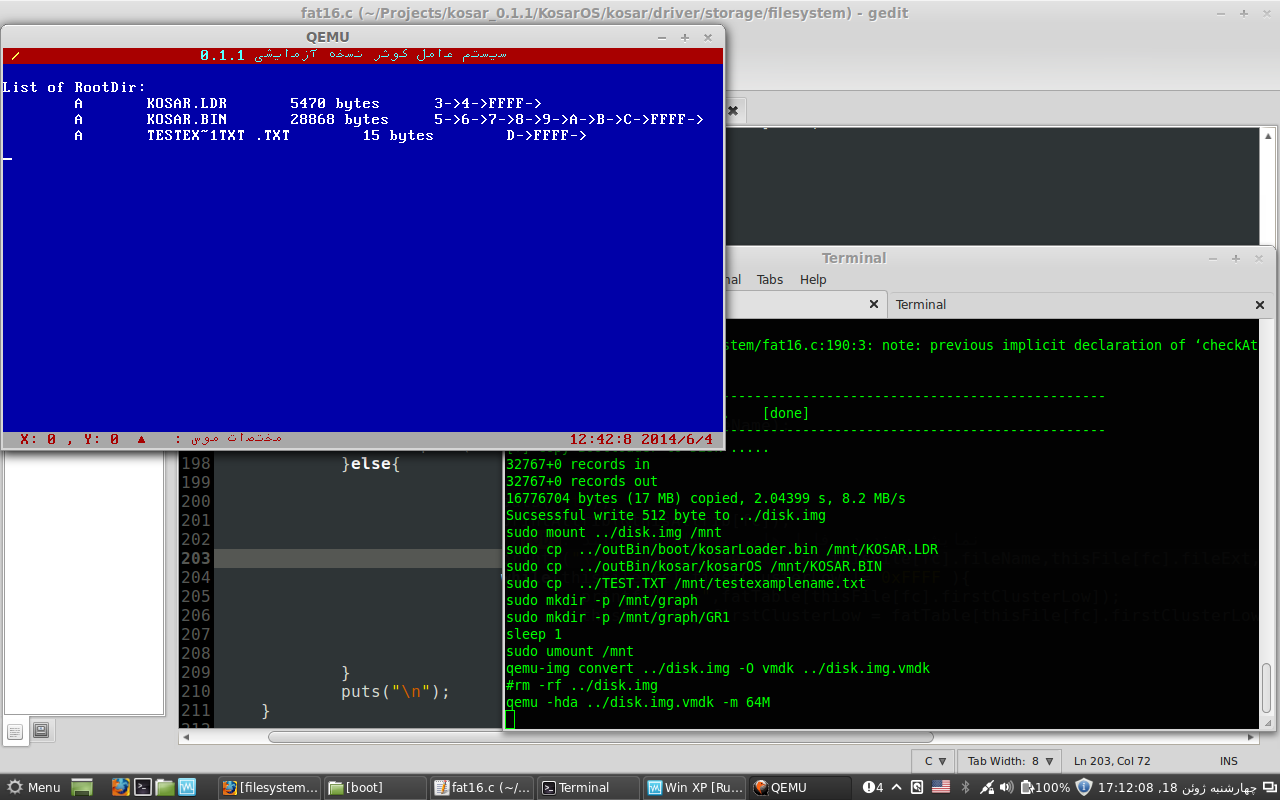 ممنون که پیگیر کار ما هستید. این پیگیری شما برای ما با ارزش و قابل احترام هست. اما نمونه های فارسی شده و یا تغییر داده شده لینوکس برای کاربران ایرانی موجود هست. در حال حاضر قرار نیست که ما سیستم عاملی بنویسیم که با لینوکس رقابت کنه. دلیلش هم کاملا واضع و مشخصی هست. کمبود دانش-کمبود زمان - کمبود .... اما به هر حال ما قصد نوشتن سیستم عاملی رو داریم که از ابتدا بومی طراحی شده باشه. شاید توی ۲ سال آینده ما بتونیم یه چیزی تو مایه های ورژن 2 لینوکس ارائه بدیم. شاید بیشتر ... شاید کمتر ... مهم این هست که تا هینجای کار کلی به دانش ما در این حوزه اضافه شده.
